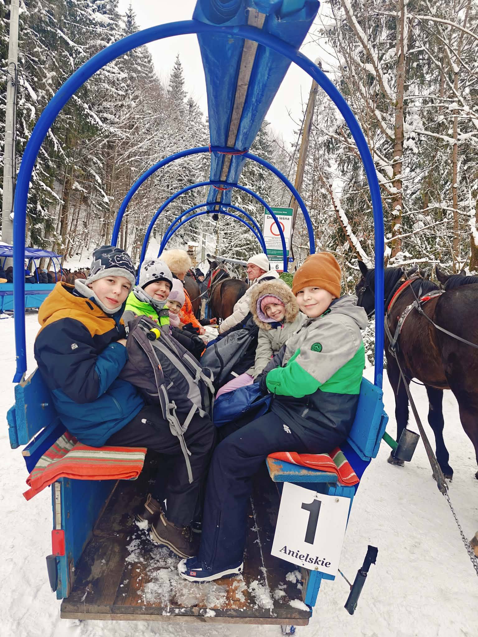 W dniu 19 lutego, w czasie ferii, dla najmłodszych mieszkańców naszej Gminy zorganizowaliśmy wycieczkę do Wisły, gdzie wzięliśmy udział w kuligu z pieczeniem kiełbasek i oscypków w programie. Tą inicjatywę zrealizowaliśmy dzięki środkom zebranym w ramach naszej autorskiej akcji pt. „Kalendarz Charytatywny 2026”.